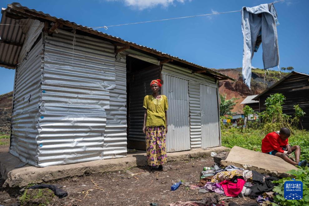 5月6日,在剛果(金)東部北基伍省戈馬市郊,雅納站在她居住的廢棄公共浴室鐵皮屋前。新華社記者 鄭揚子 攝