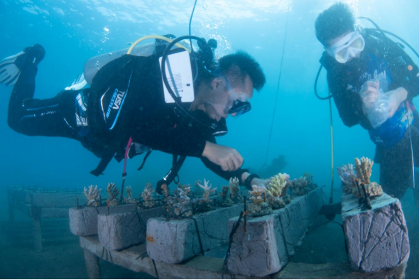 拯救珊瑚礁,保護美麗海底花園——巴厘島電站珊瑚放養。(中國華電供圖)