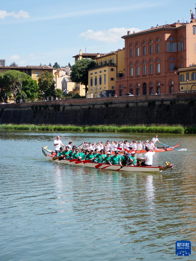陽光灑在阿諾河上,粼粼波光映出兩岸人潮。5月31日,意大利佛羅倫薩地標性建筑老橋旁,一場別開生面的端午節龍舟比賽鳴鼓開槳。