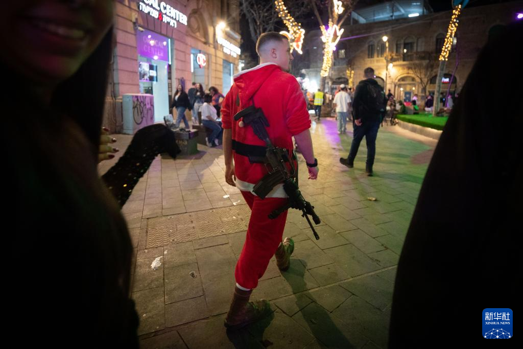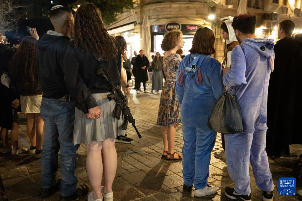 3月13日,在耶路撒冷街頭,一名男子攜槍出行。新華社記者 陳君清 攝