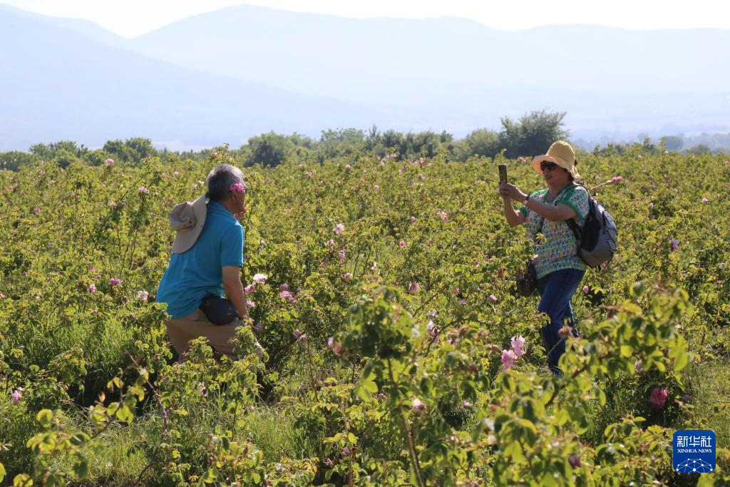 6月8日,在保加利亞卡贊勒克,游客在玫瑰采摘儀式上拍照。新華社記者 林浩 攝