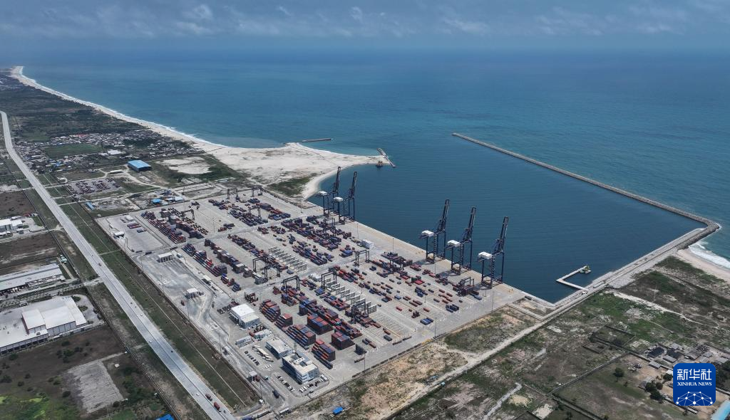 這是2024年3月1日在尼日利亞拉各斯拍攝的萊基深水港(無人機照片)。新華社記者 韓旭 攝