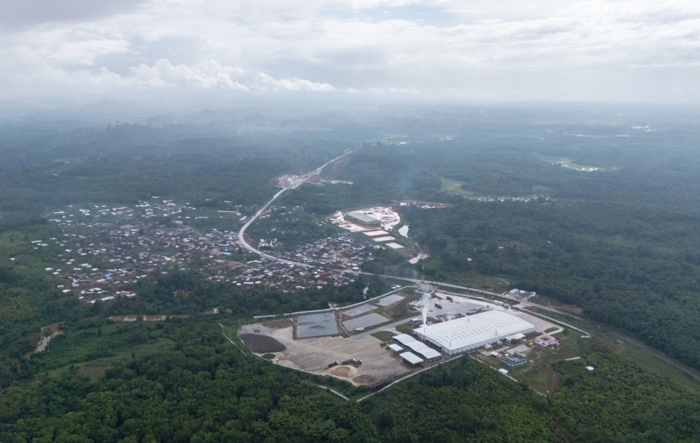 這是2025年5月30日在科特迪瓦圣佩德羅省大貝雷比鎮拍攝的中國企業美蘭集團投產的橡膠加工廠(無人機照片)。新華社記者 王冠森 攝