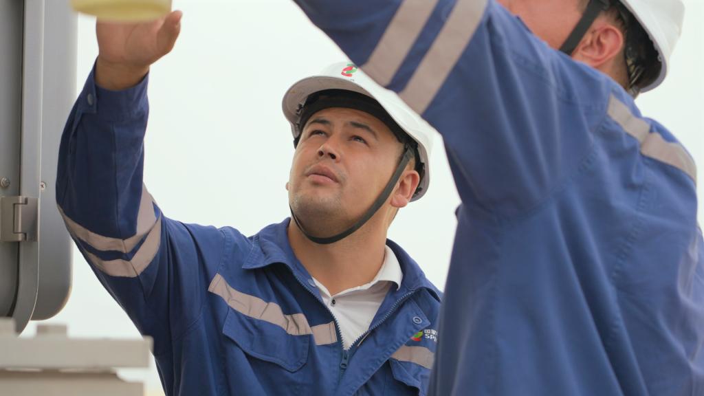 阿比爾加濟耶夫從調度員開始做起,跟著中國師傅學習風電相關技術,如今已成長為獨當一面的項目部運維班長?!拔以谶@個崗位上已工作兩年,學到了很多新技術?!?/p>