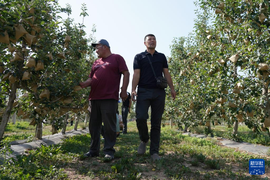 6月16日,培訓班學員在位于陜西省渭南市白水縣的西北農林科技大學蘋果試驗站參觀果園。