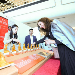 6月16日,在瑞士日內瓦萬國宮,嘉賓在“人人享有無障礙:構建包容未來”主題展覽上了解故宮博物院推出的脊獸。新華社記者 連漪 攝