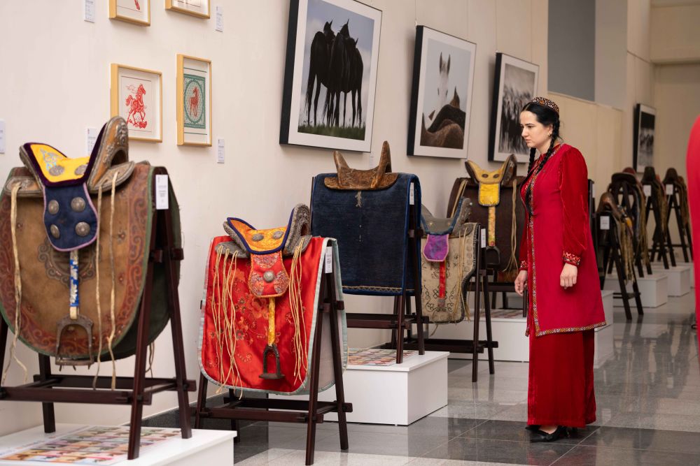 2025年6月3日,一名女子在土庫曼斯坦首都阿什哈巴德參觀“騏驥馳騁——2025中國馬文化展”。新華社發