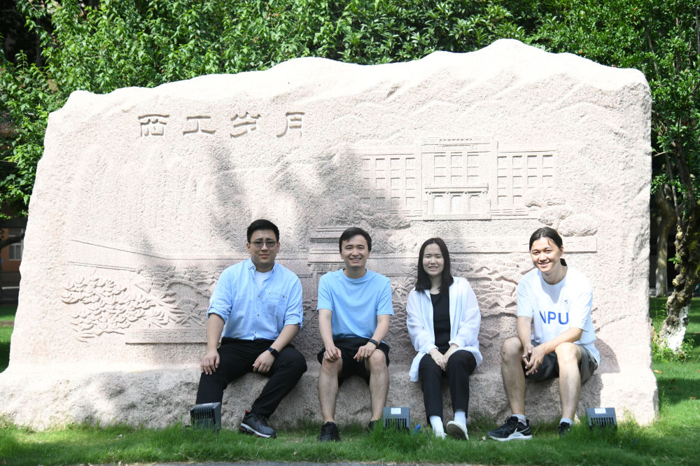 2024年6月26日,西工大哈薩克斯坦分校學生道托夫·鐵木爾、博雷斯別克·穆拉特、伊薩耶娃·豪哈爾和圖列加利·阿米爾(從左至右)在位于陜西西安的西北工業大學本部校園內合影。新華社記者 張博文 攝