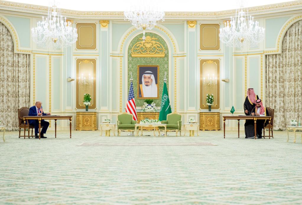 5月13日,美國總統特朗普(左一)在沙特阿拉伯首都利雅得訪問。新華社發(沙特通訊社供圖)