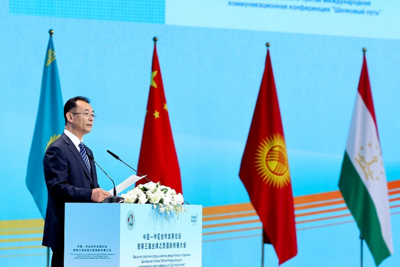 當日,中國—中亞合作發展論壇暨第三屆絲綢之路國際傳播大會在哈薩克斯坦阿斯塔納舉行,來自中國和中亞地區的約240位媒體智庫和文化、企業界代表圍繞深化絲路合作等議題進行深入討論。