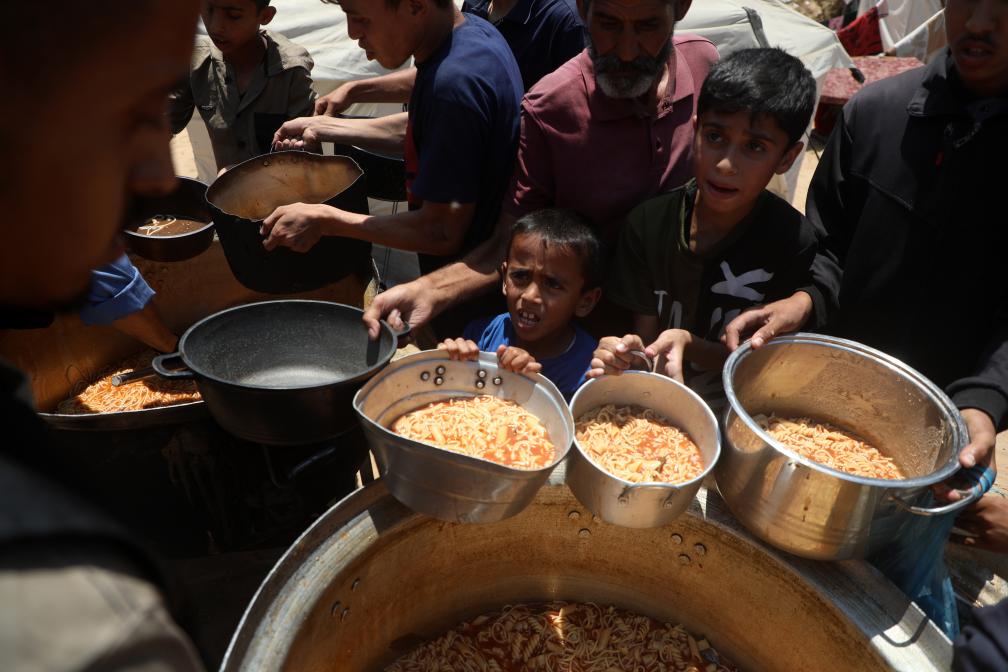 6月21日,在加沙城,當地民眾領取免費食物。新華社發(里澤克·阿卜杜勒賈瓦德攝)