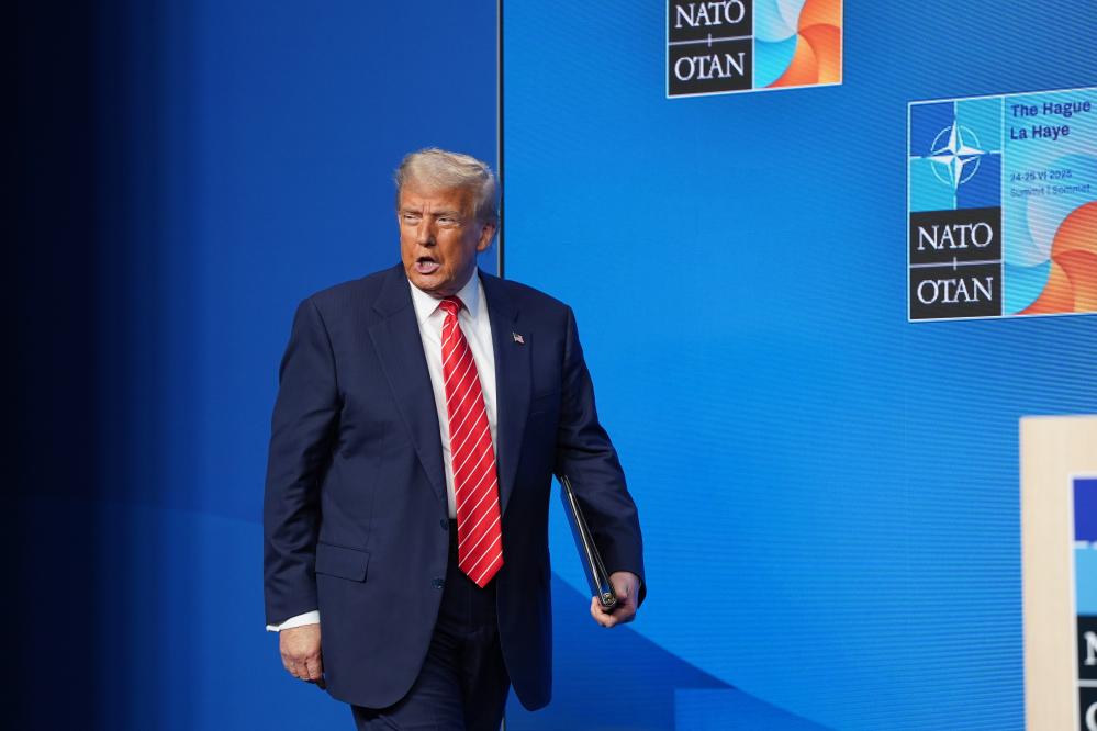 6月25日,在荷蘭海牙,美國總統特朗普在北約峰會期間出席新聞發布會。新華社記者彭子洋攝