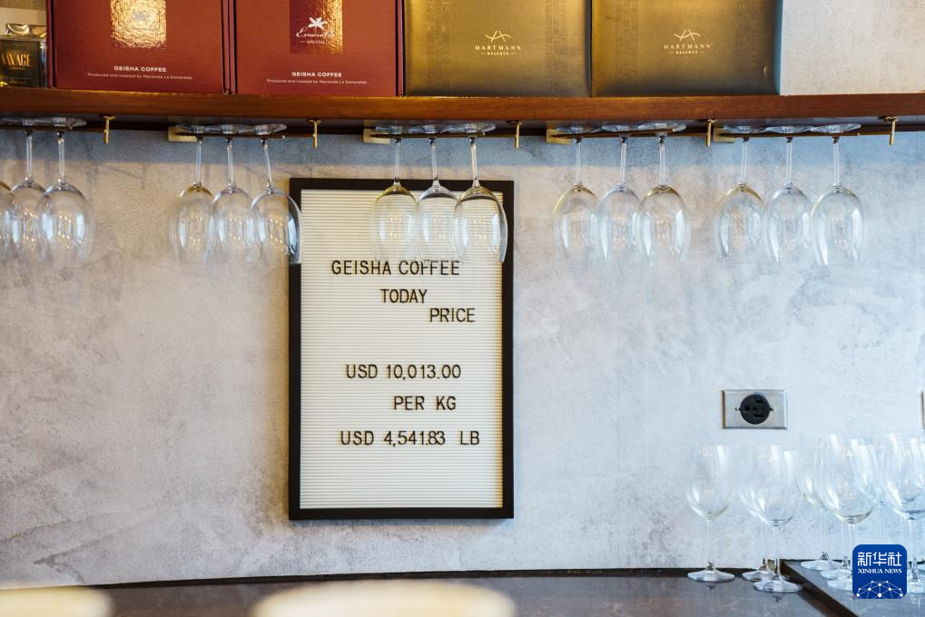 這是3月20日在巴拿馬首都巴拿馬城的一家咖啡館拍攝的瑰夏咖啡價格表。新華社記者 許詠政 攝
