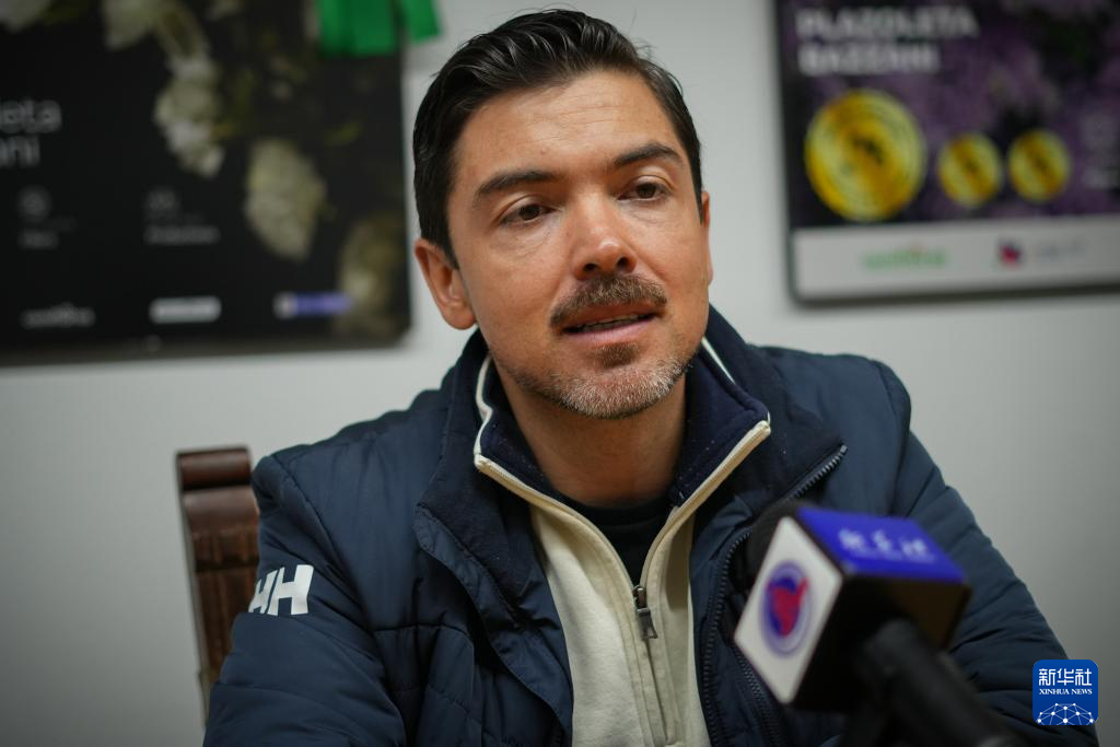 6月6日,在哥倫比亞昆迪納馬卡省法卡塔蒂瓦市,巴扎尼花圃總經理巴勃羅·巴扎尼接受采訪。新華社發(安德烈斯·莫雷諾攝)