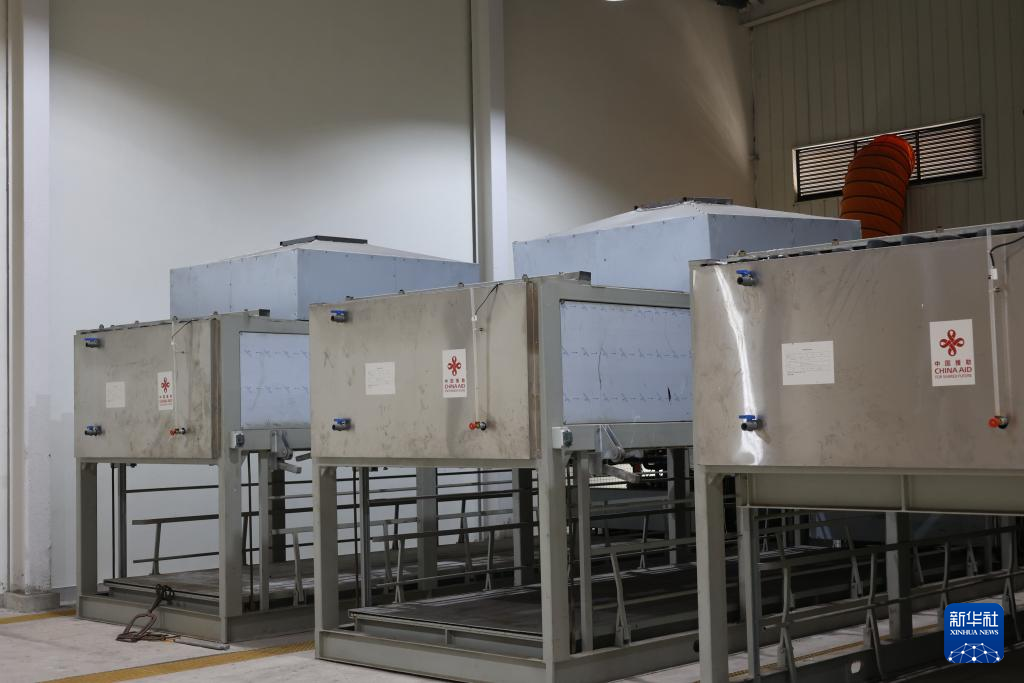 這是6月3日在加納首都阿克拉拍攝的中國援建的詹姆斯敦漁港的制冰設備。新華社記者 高劍飛 攝