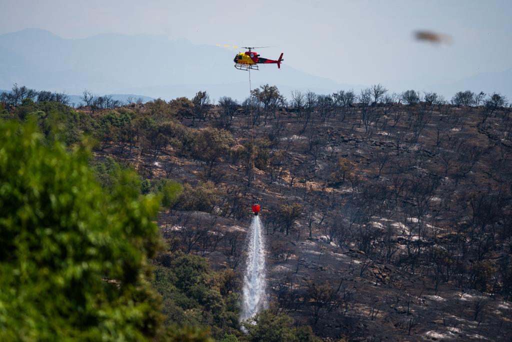 2025年7月2日,直升機在西班牙列伊達的森林火災中滅火。西班牙連日來遭遇強熱浪侵襲,高溫導致各地森林火災風險上升。該國東北部加泰羅尼亞自治區列伊達近日發生森林火災。新華社發(胡安·戈薩攝)