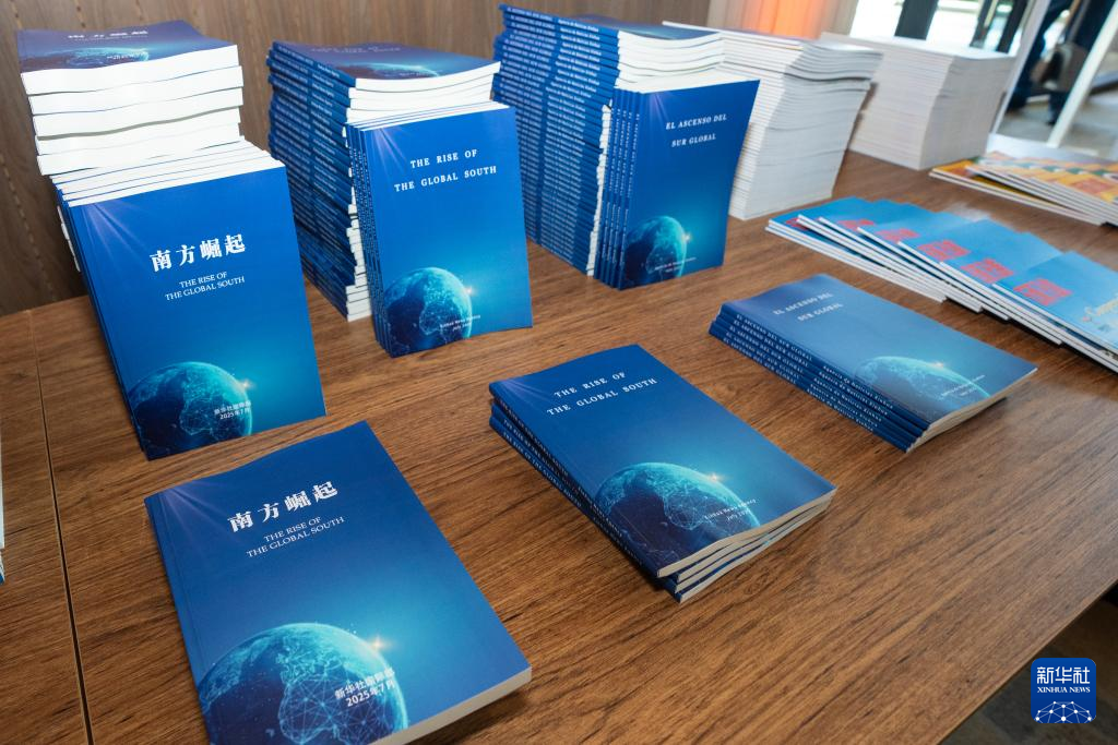 這是7月16日在巴西里約熱內盧舉行的金磚國家媒體智庫高端論壇上拍攝的《南方崛起》多語種報告。新華社記者 王天聰 攝