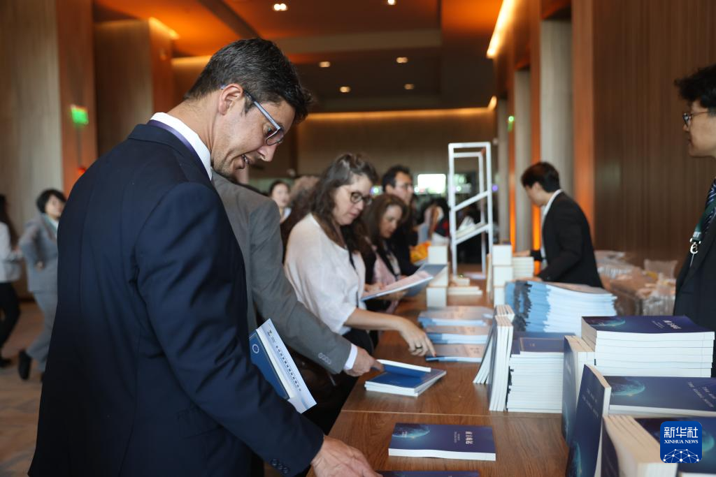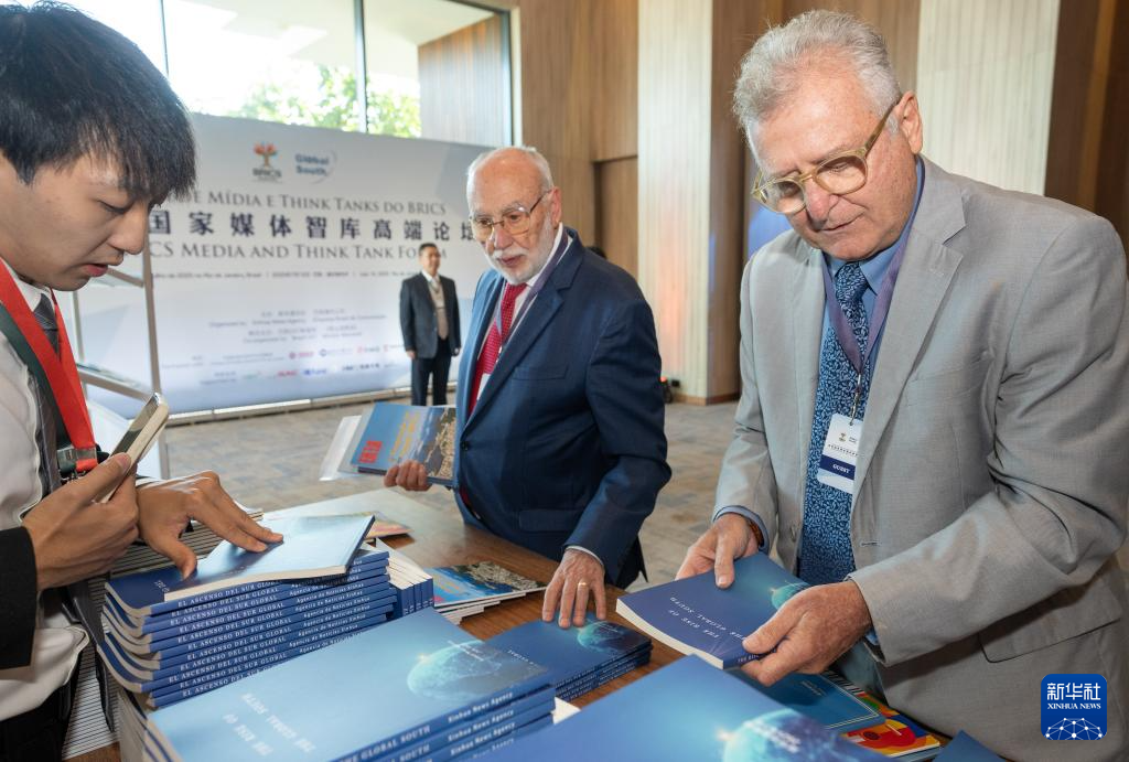 7月16日,在巴西里約熱內盧,嘉賓在金磚國家媒體智庫高端論壇上翻閱《南方崛起》。新華社記者 李夢馨 攝