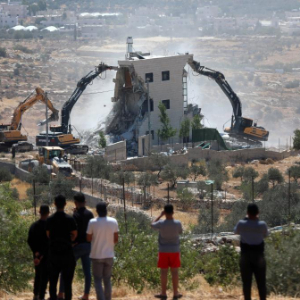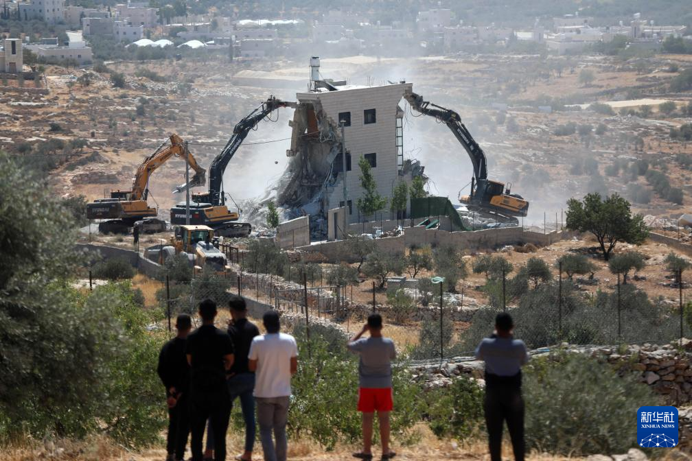 7月14日,在約旦河西岸的伯利恒地區,以方人員駕駛工程車輛拆除巴勒斯坦人的房屋。 新華社發(馬蒙·沃茲沃茲攝)