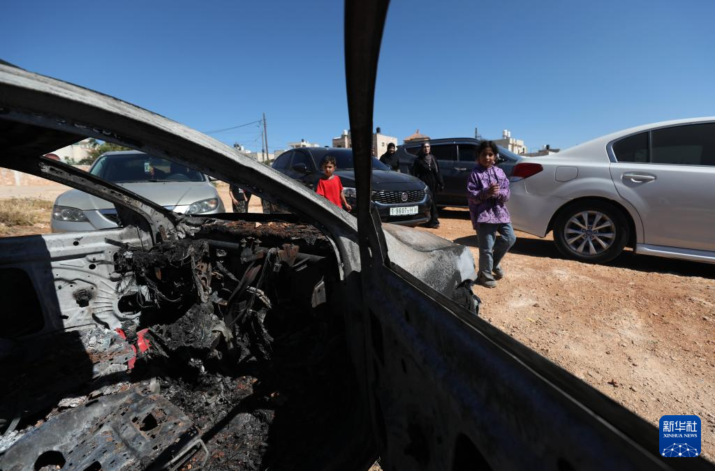 這是6月26日在約旦河西岸拉姆安拉以東的馬利克村拍攝的損毀汽車。 新華社發(艾曼·諾巴尼攝)