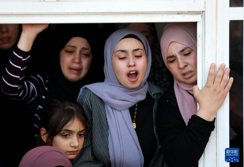 6月26日,在約旦河西岸拉姆安拉以東的馬利克村,巴勒斯坦人哀悼遇難的親人。 新華社發(艾曼·諾巴尼攝)