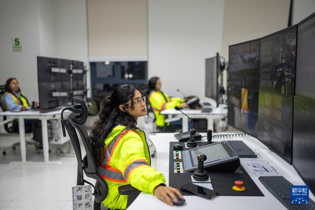 18時45分,秘魯軌道吊操作員克勞迪婭·雷諾索準時到崗交接。錢凱港現有16位軌道吊操作員,每個班次通常只需4至5人,即可完成全部15臺軌道吊的作業監控。