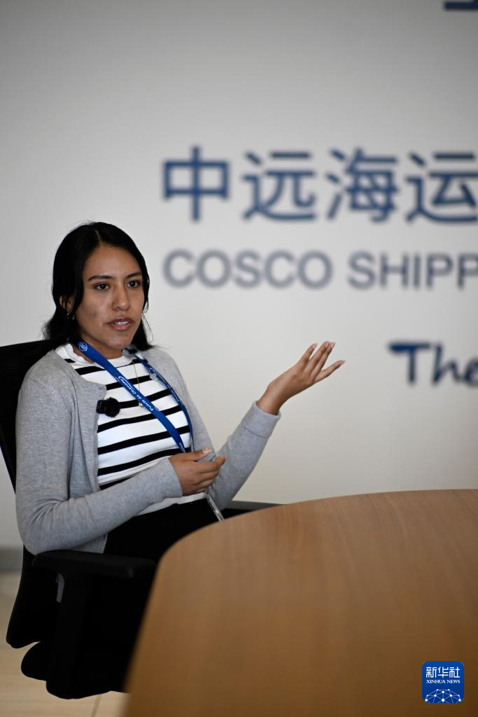5月16日,在秘魯錢凱港,秘魯Indurama家電公司外貿主管邁拉·烏伊卡接受采訪。新華社記者 李木子 攝