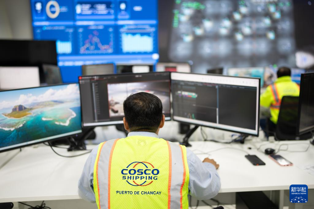 控制區的安靜與碼頭的繁忙形成鮮明對比,這正是智慧港口高效運行的體現。錢凱港開通后,中秘兩國間的單程海運時間縮短至23天左右,物流成本節約20%以上。在先進的港口管理經驗與設備技術助力下,錢凱港已發展成為拉美地區領先的智慧港口。