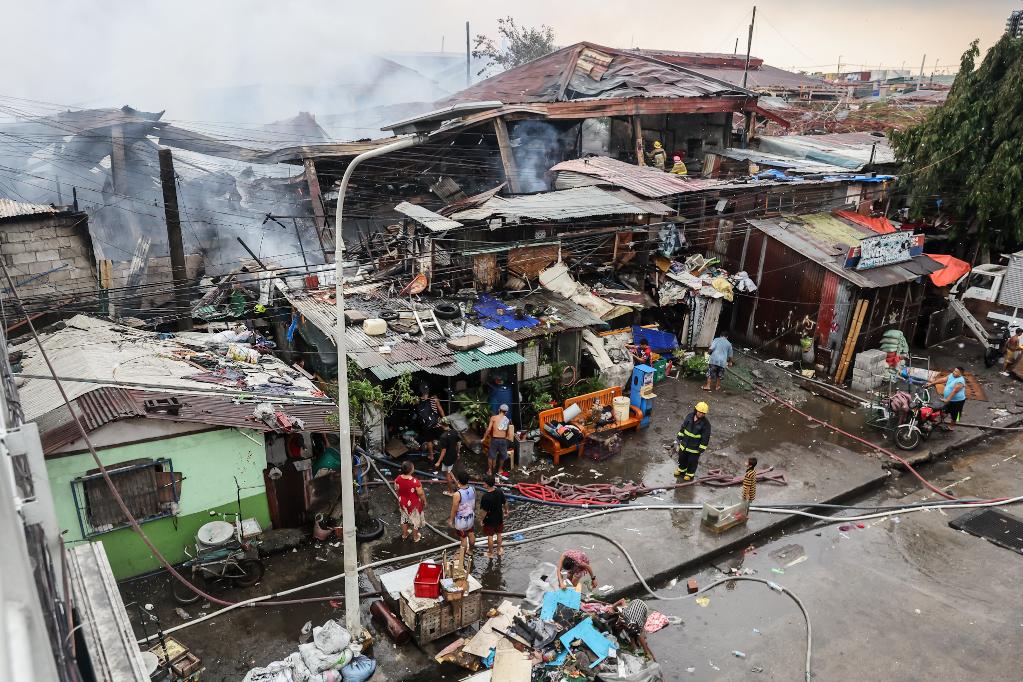 8月6日,在菲律賓馬尼拉一貧民窟大火現場,居民和消防員參與滅火。新華社發(烏馬利攝)
