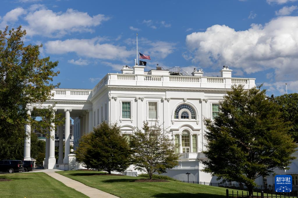 8月27日,在美國首都華盛頓,白宮降半旗向槍擊事件受害者志哀。新華社記者 胡友松 攝