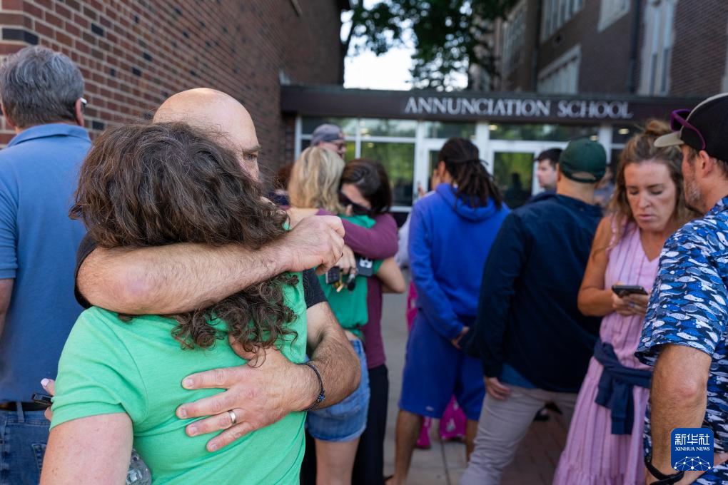 8月27日,家長們在美國明尼蘇達州明尼阿波利斯市南部一所學校等待消息。新華社/美聯