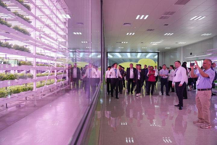 5月19日,上海合作組織減貧和可持續發展論壇與會人員在陜西楊凌智慧農業示范園進行實地考察。新華社記者 邵瑞 攝