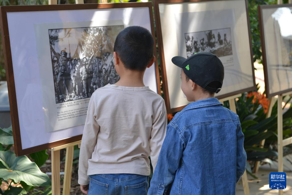 記者尋聲步入非洲華文教育基金會中文學校所在院落,通道兩側一個個圖片展架映入眼簾——展出的60幅照片再現了中國人民經過14年艱苦卓絕斗爭,取得抗日戰爭偉大勝利的那段歷史。