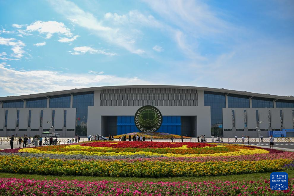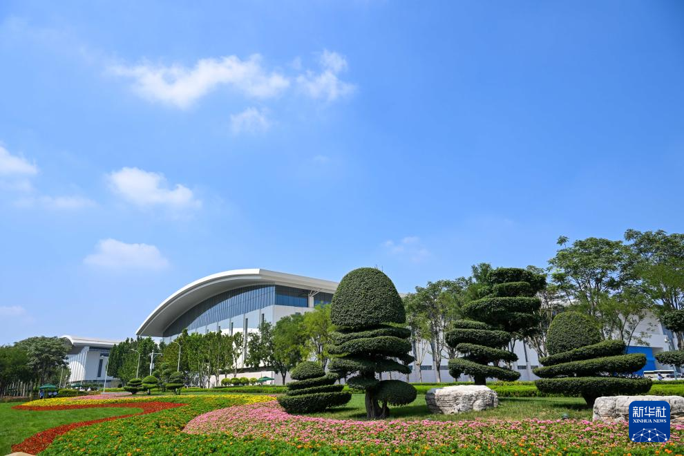 這是9月1日拍攝的天津梅江會展中心外的花壇。新華社記者 孫凡越 攝