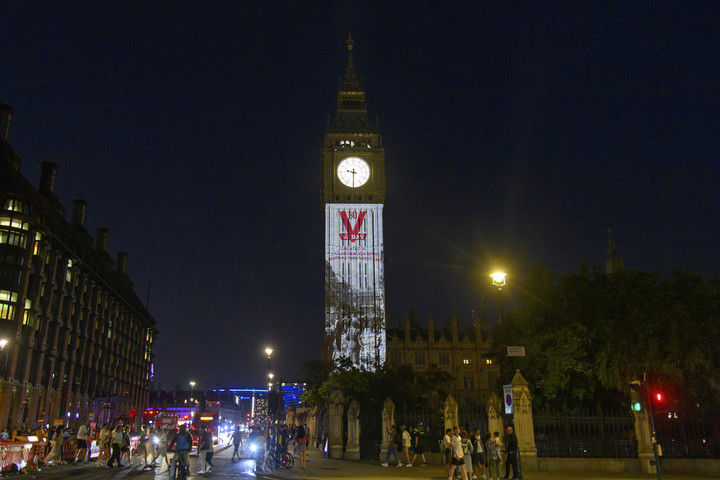 8月15日,位于英國倫敦的大本鐘被點亮。當晚,英國點亮多處地標建筑,包括白金漢宮、唐寧街10號、議會大廈等,紀念二戰對日作戰勝利80周年。新華社發(雷伊·唐攝)