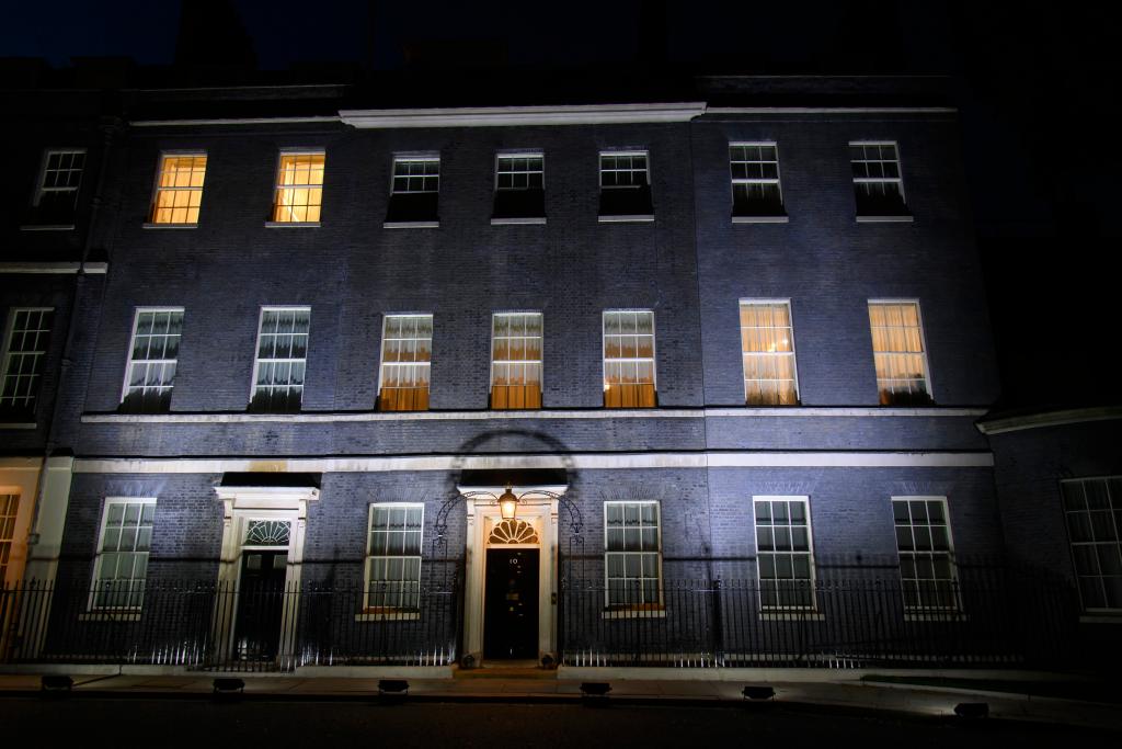 8月15日,位于英國倫敦的唐寧街10號首相府被點亮。新華社發(雷伊·唐攝)
