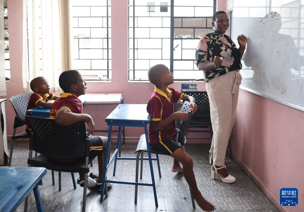 在牙買加首都金斯敦的一間教室里,艾特特殊教育小學校長娜塔莎·拉塞爾在黑板上書寫著與顏色相關的漢字,孩子們端坐在椅子上,跟隨她輕聲朗讀。教室里時而響起整齊的讀書聲,時而響起輕快的中文歌曲旋律。
