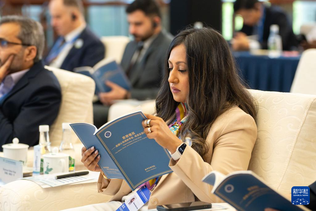 9月7日,與會代表在2025全球南方媒體智庫高端論壇上閱讀《思想殖民——美國認知戰的手段、根源及國際危害》智庫報告。新華社記者 高詠薇 攝