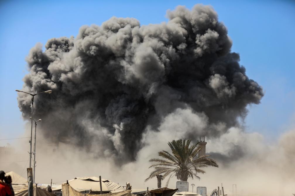 9月5日,加沙城一棟建筑遭以色列軍隊空襲后升起濃煙。新華社發(里澤克·阿卜杜勒賈瓦德攝)