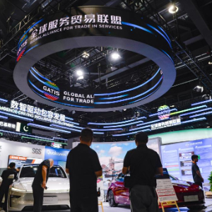 9月10日拍攝的2025年服貿會主題展全球服務貿易聯盟展臺。