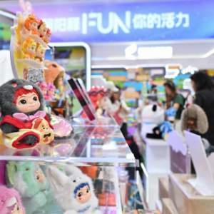 9月10日,參觀者在泡泡瑪特展區拍攝展品。