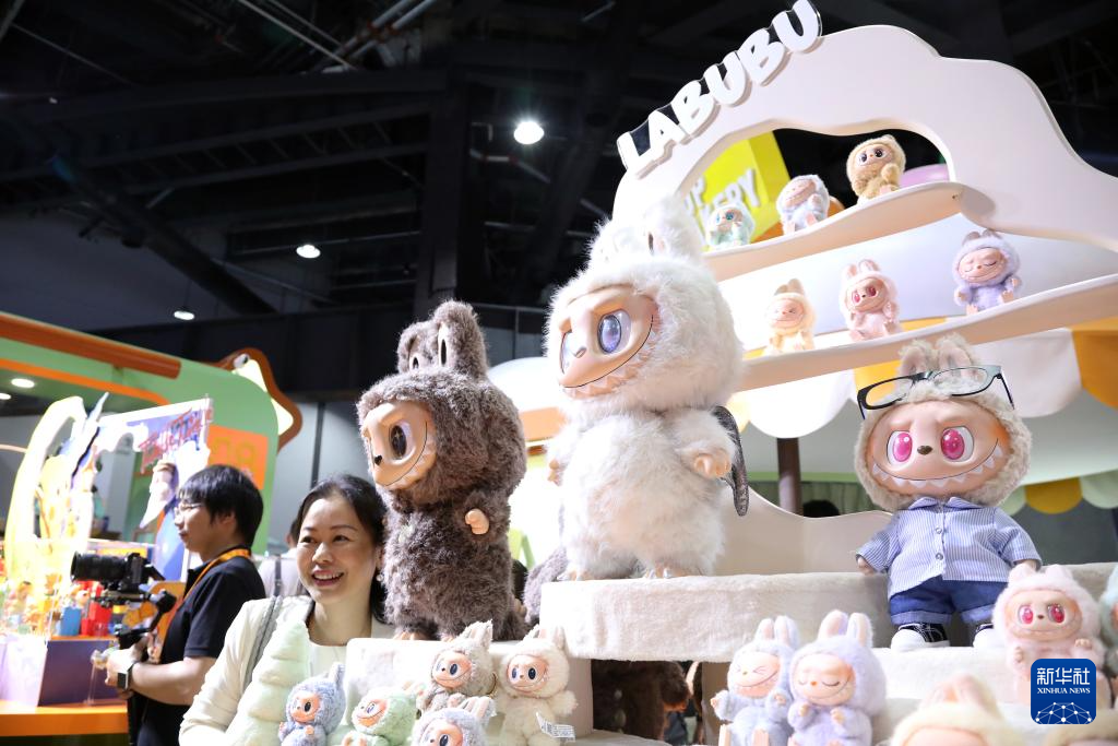 9月10日,觀眾在服貿會主題展區泡泡瑪特展臺前參觀。