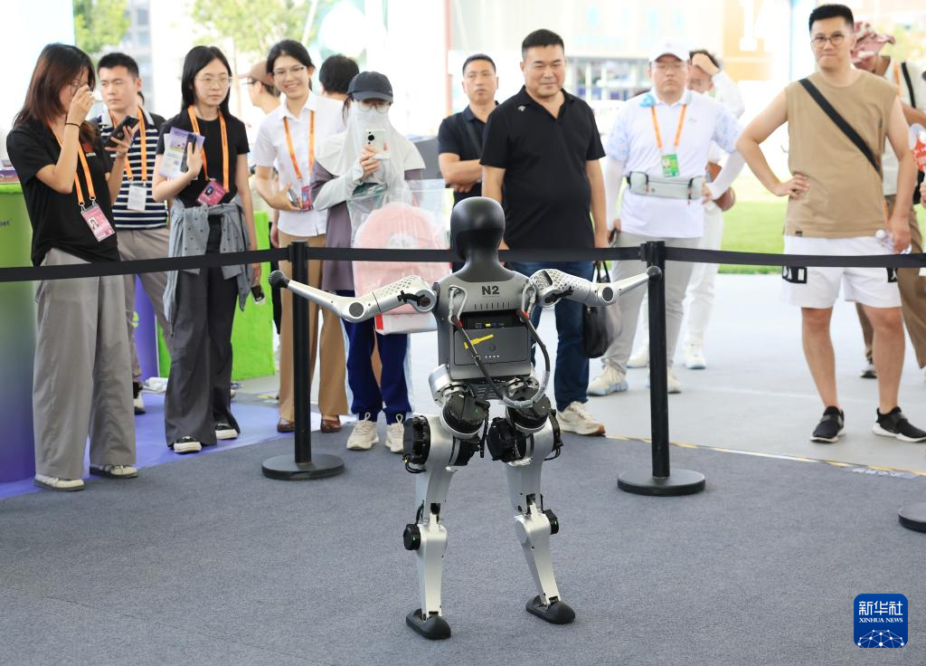 這是9月11日在體育服務專題展區拍攝的世界人形機器人運動會獲獎機器人。