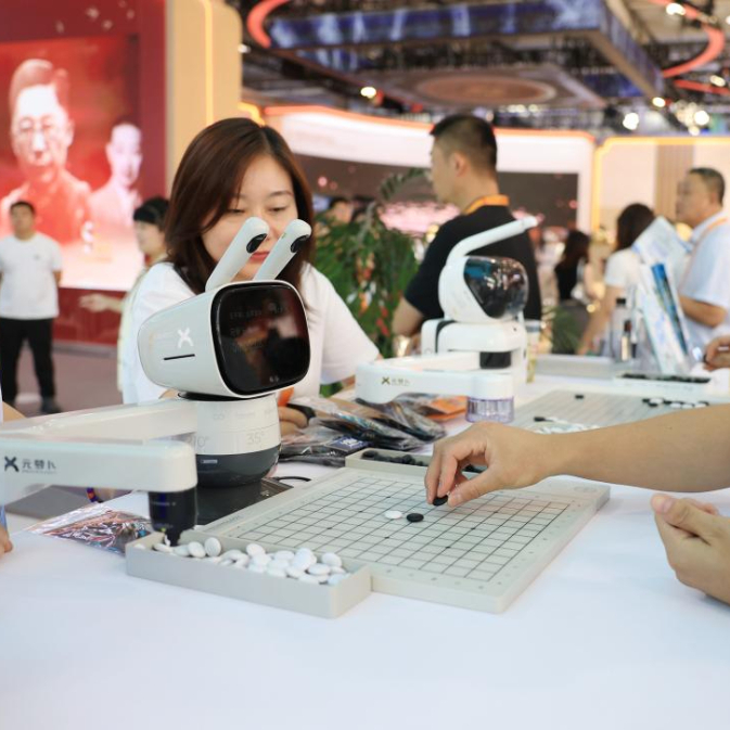 9月11日,一款下棋機器人在文旅服務專題展區與參觀者對弈。