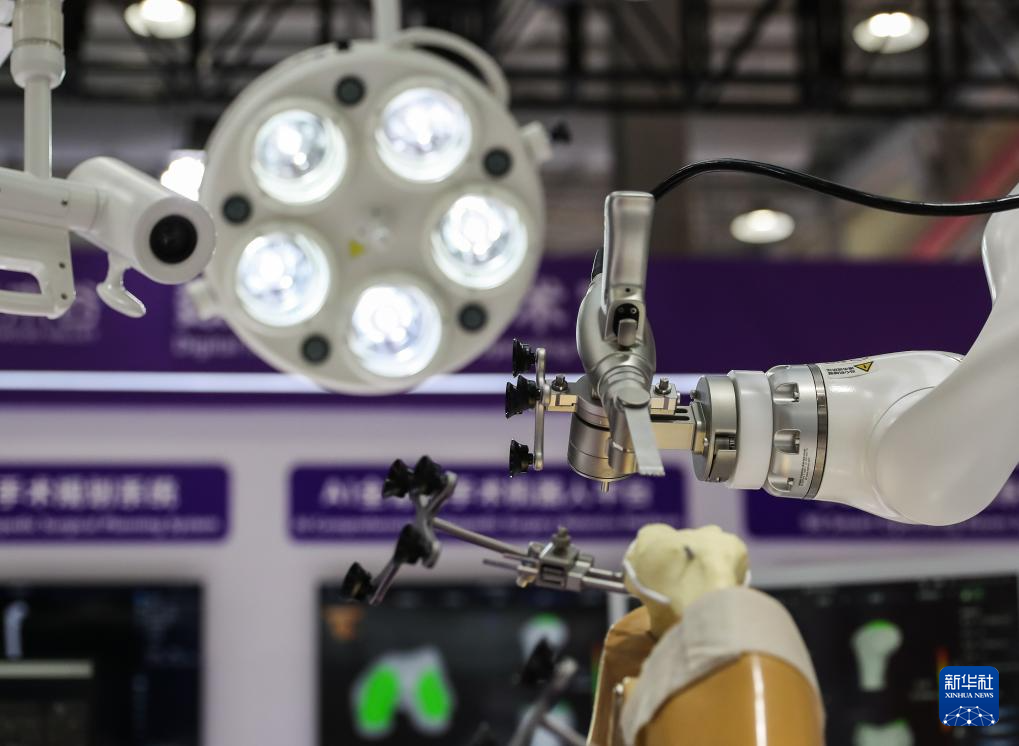 這是9月10日在長木谷醫療科技展區拍攝的數智骨科手術室展示。