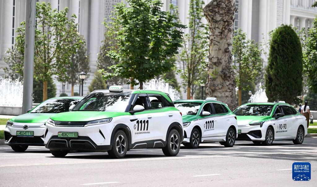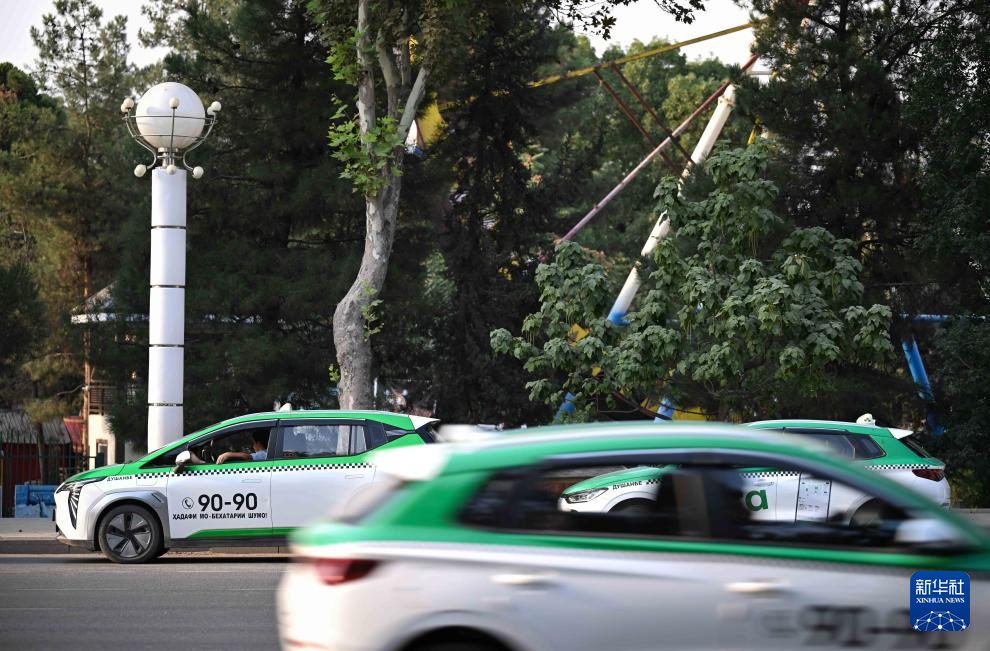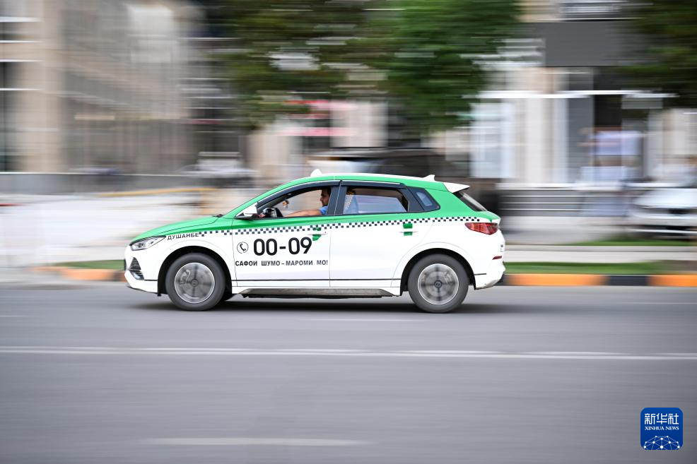 這是8月23日在塔吉克斯坦杜尚別拍攝的中國品牌新能源出租車。新華社記者 李任滋 攝