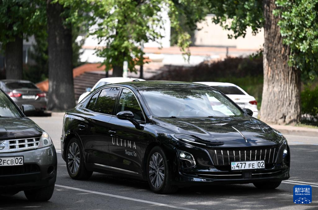 這是8月3日在哈薩克斯坦阿拉木圖拍攝的一輛中國品牌新能源出租車。新華社記者 李任滋 攝