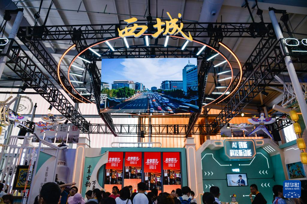 9月13日,在北京首鋼園拍攝的2025年服貿會文旅服務展館西城區展臺。