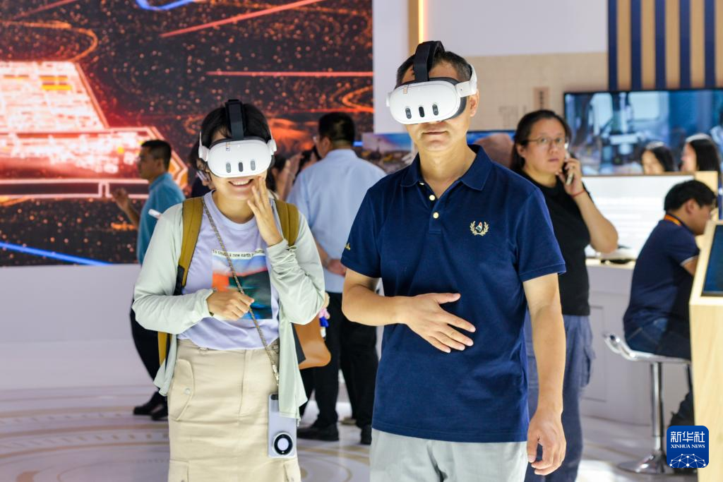 9月12日,在北京首鋼園,參展者在2025年服貿會文旅服務展館北京市廣電局展臺體驗、了解虛擬現實數智化文商旅解決方案。