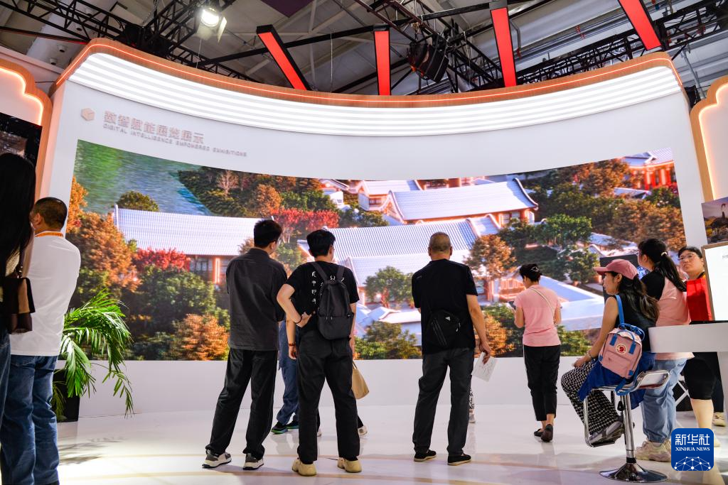 9月13日,在北京首鋼園,參展者在2025年服貿會文旅服務展館北京市文物局展臺觀看、了解數智賦能展覽展示。
